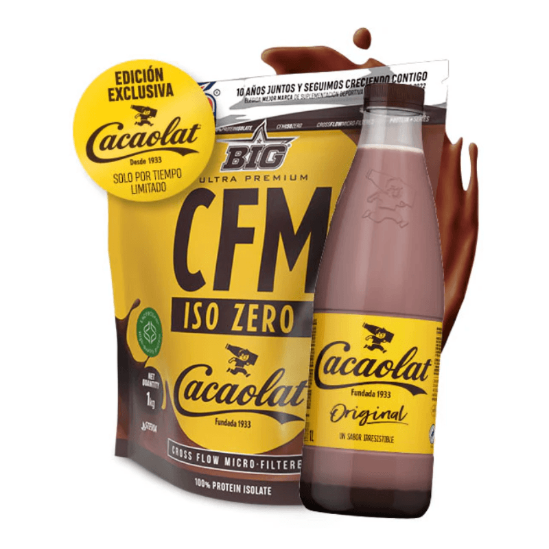Descubre la nueva proteína CFM ISO ZERO CACAOLAT® fruto de una nueva colaboración de BIG® y CACAOLAT®. Disfruta ya del genuíno sabor a cacao que te acompañó durante toda tu infancia, ahora disponible por tiempo limitado en la mejor proteína del mercado, con la calidad y seguridad que ofrece el mejor aislado de suero Lacprodan® SP-9225 Instant de Arla® Foods Ingredients.