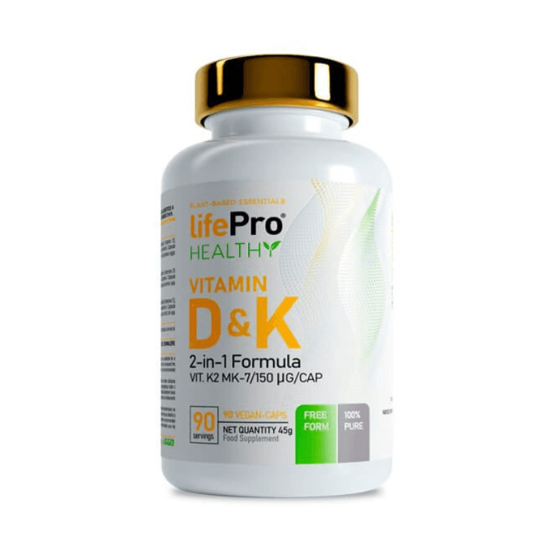 Vit D&K es un complejo diseñado por Life Pro que aporta vitamina D y vitamina K en una misma cápsula para facilitar un correcto aporte diario de dos vitaminas esenciales para el organismo, de manera sencilla y cómodo de tomar.